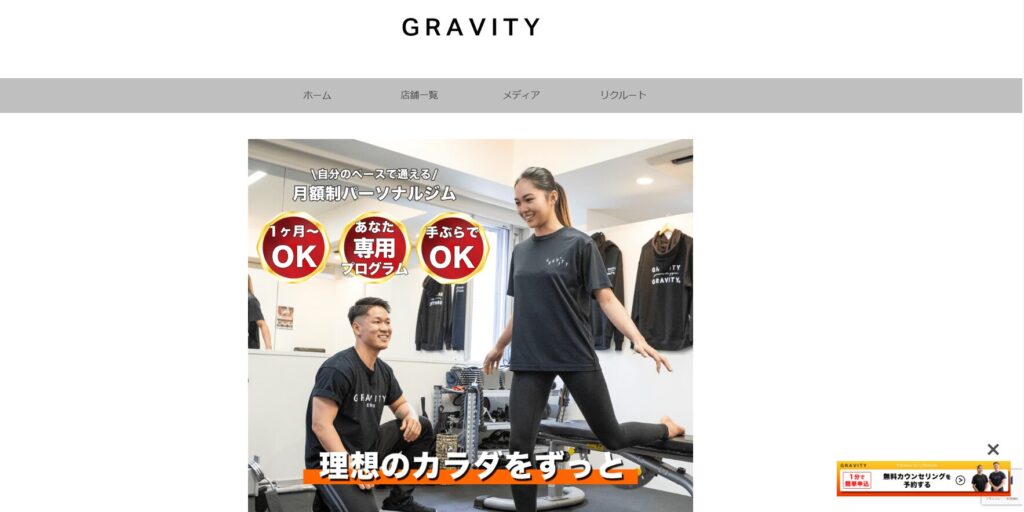 GRAVITY(グラビティ)は、全国展開する完全個室のマンツーマンジムです。特に「シニアプラン」に力を入れており、運動経験がない方や体力に自信がない方でも、安心して通い始められる環境を整えています。